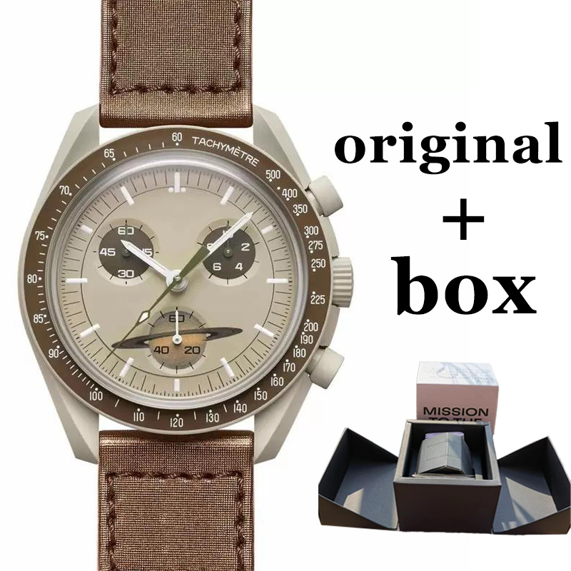 The Mission to Saturn stands out in the MoonSwatch collection for its warm, earthy tones and one-of-a-kind Saturn ring detail on the chronograph subdial. With a soft beige Bioceramic case and sand-coloured dial, this model brings a softer, vintage-inspired feel to the Speedmaster silhouette. It’s a must-have for collectors looking for something different — refined, balanced, and quietly bold.